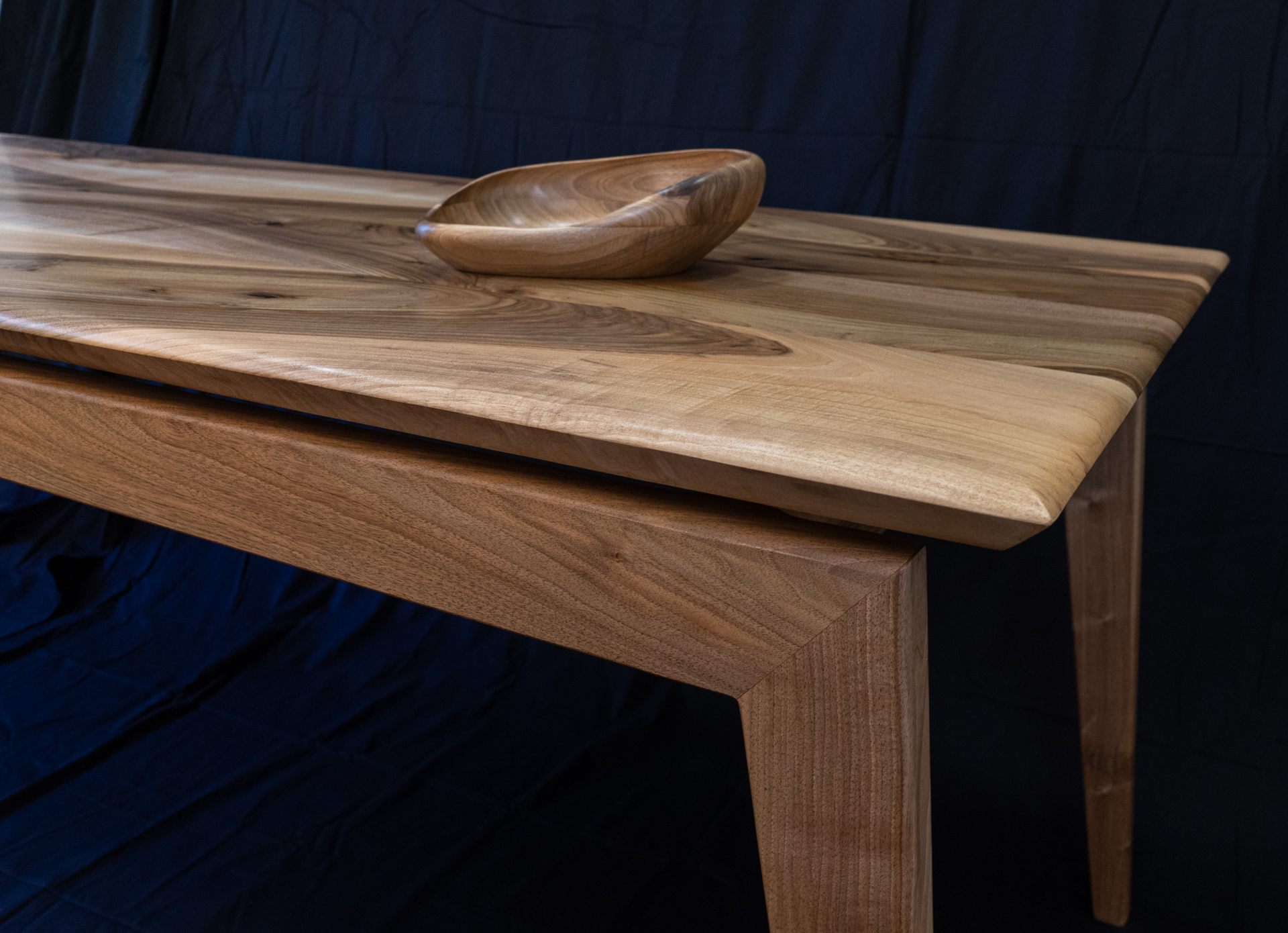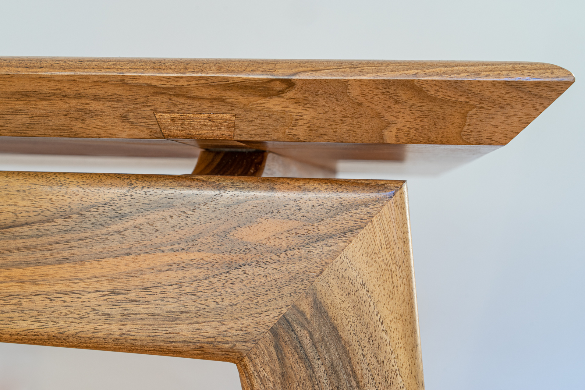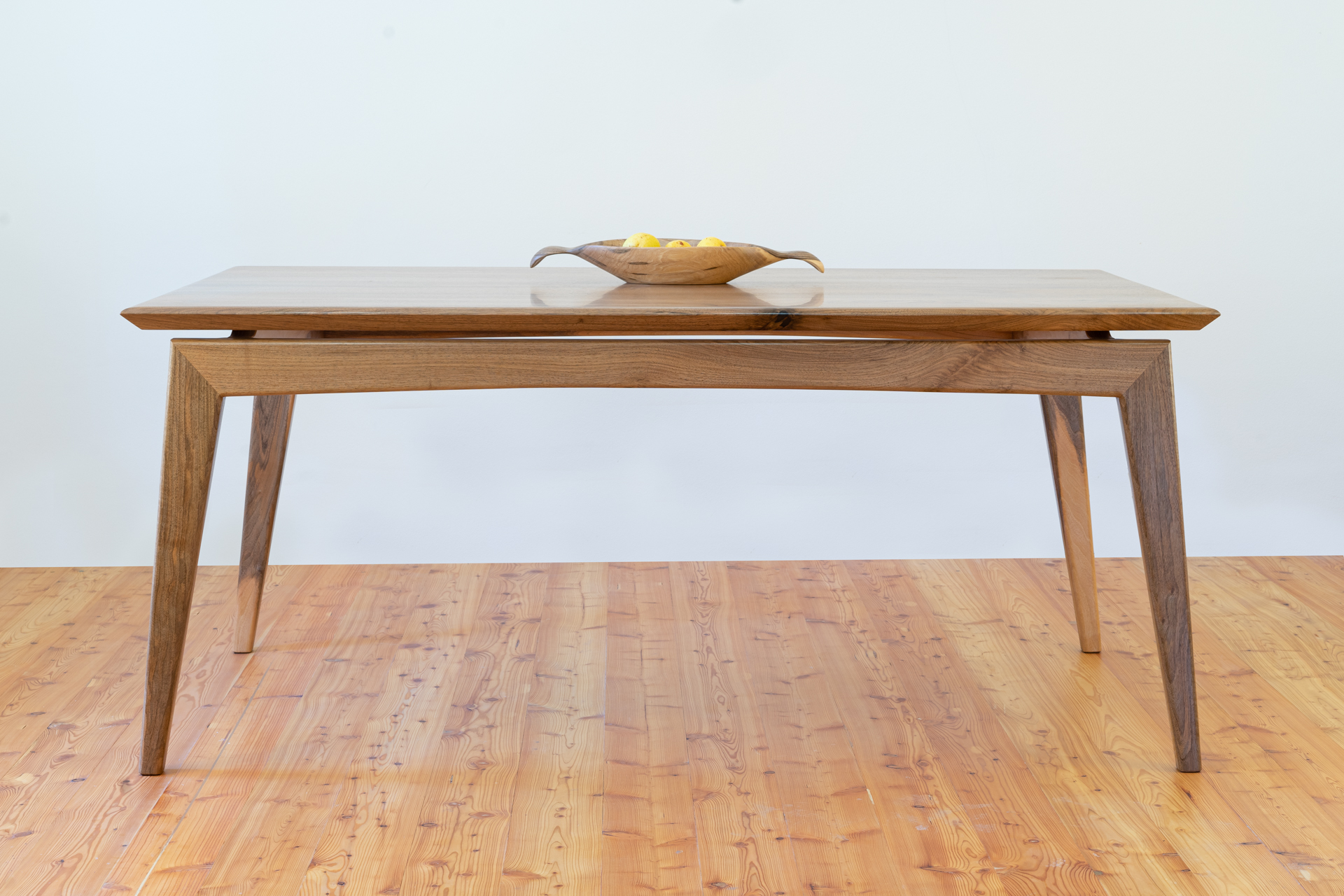 Mengus je moderný jedálenský stôl z masívneho dreva. Má vzdušný, ľahký dizajn, pritom dostatočne pevný a tuhý. Keďže vyrábam vo veľmi malých množstvách, môžete si byť istý, že budete jedným z mála ľudí na svete, ktorý tento elegantný kus vlastnia. Top stola je pripevnený pomocou zvlakového spoja, ktorý umožňuje drevu voľne pracovať a predchádza tak možným problémom s praskaním. Mengus je originálny MENGAart dizajn. Rozmery vyobrazeného stola sú 170x90x75cm